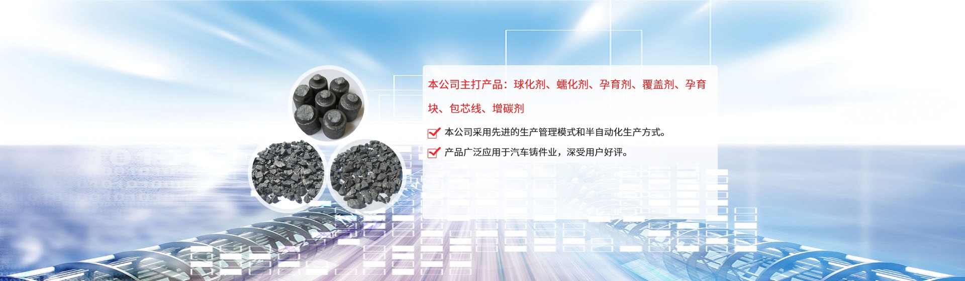 公司引進日本企業的生產管理模式,半自動化生產方式。目前生產能力:球化劑250T/月、孕育劑300T/月、鑄造相關品200T/月。為嚴格控制產品質量,公司采用國內的ICP-AES等離子體發射光譜儀對采購原